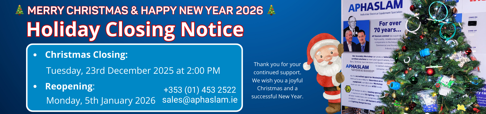 For nearly 80 years, AP Haslam Limited has supplied high quality, reliable electrical components to the Industrial, Commercial and Hazardous Industry Sectors.